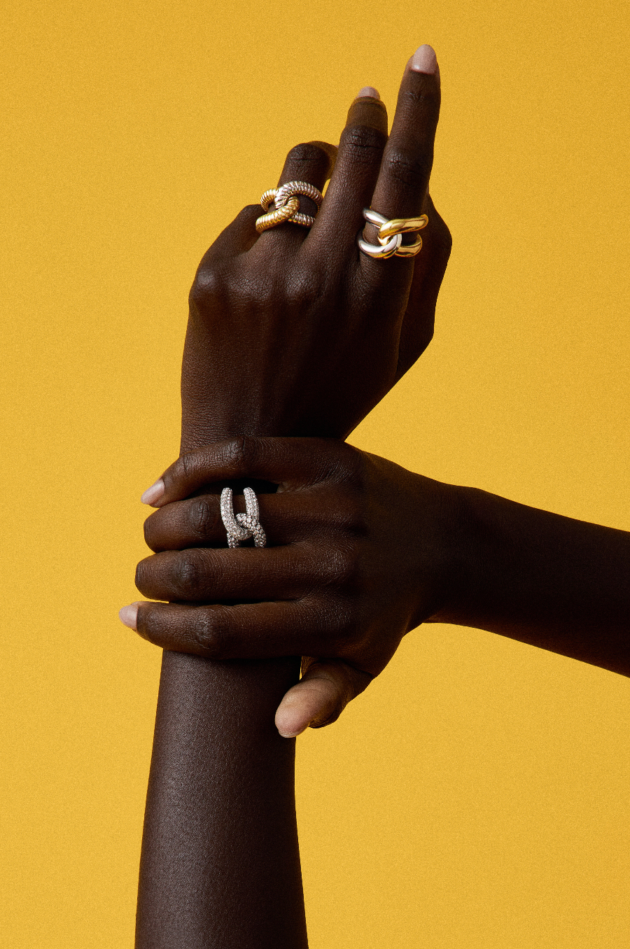 Ring is made up of two interchangeable parts. To order a custom combination or third part please e-mail info@gemellajewels.com.